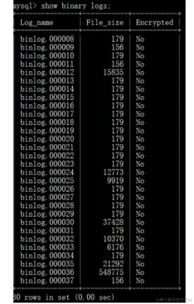 mysql> show binary logs;