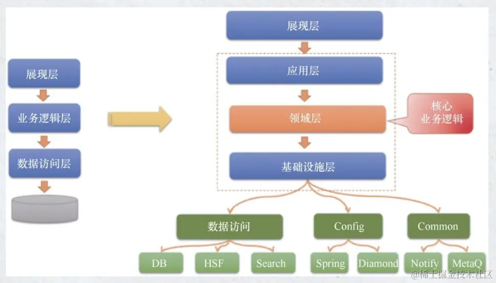 领域驱动设计(Domain-Driven Design,DDD)是一种开发思想,强调将软件系统的注意力集中在业务领域上,将领域视为应用的核心。在架构设计中,DDD 提供了一种不同的思维方式,从以数据为中心的传统模型转向以业务领域为中心的模型。