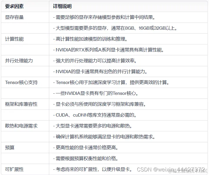 以下是AI模型对显卡的要求 参数