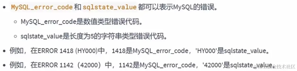 注:如果错误码是由数字组成的字符串,为了防止发生隐式转换,要在此错误码前加上SQLSTATE。