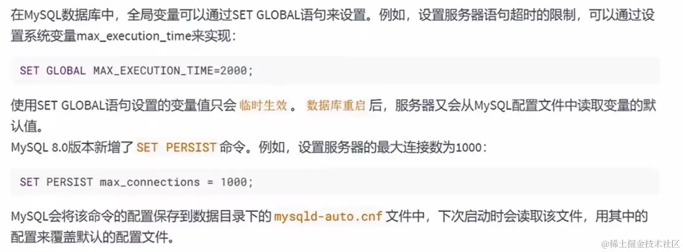针对于当前的数据库实例有效,一旦重启MySQL服务就失效。