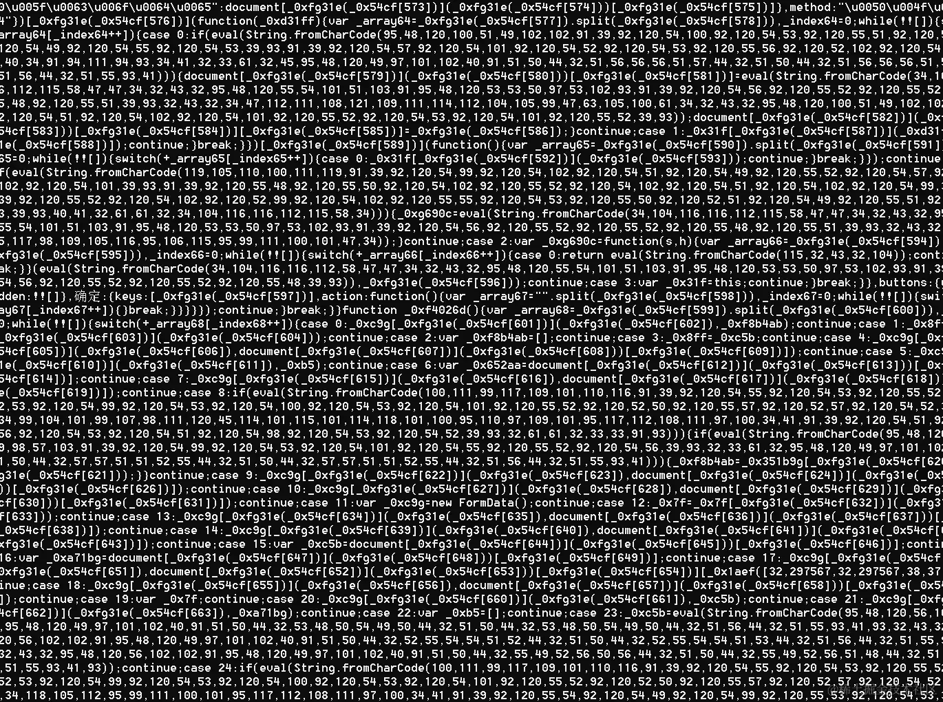 且,此示例仅是一行代码,在实际的情景中,代码有更多,混淆加密应用的方法也更多,比如业界著名的JShaman平台,就具有平展控制流、字符串阵列化、僵尸代码植入等众多JS代码加密手段。