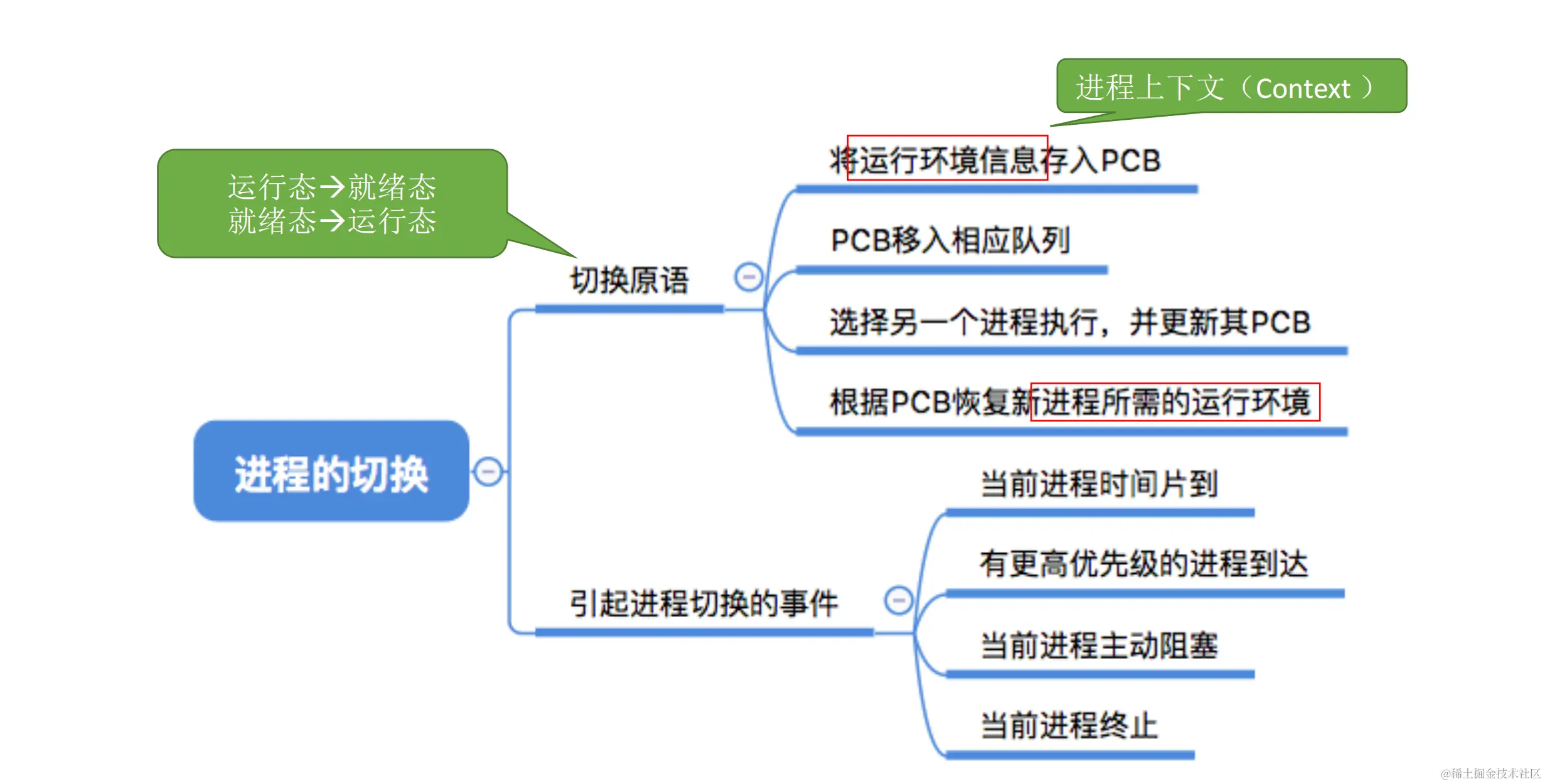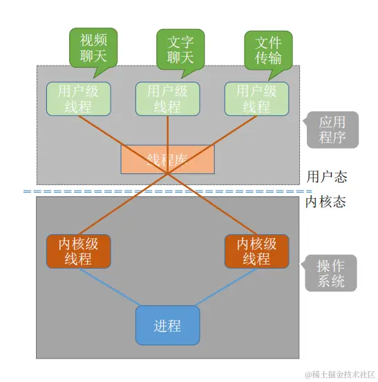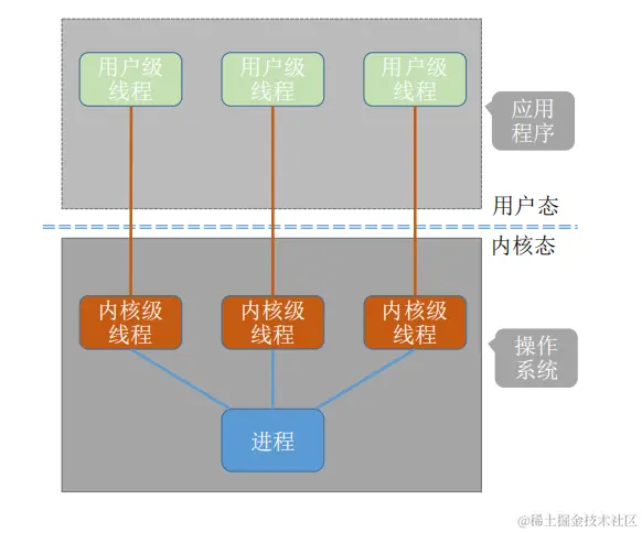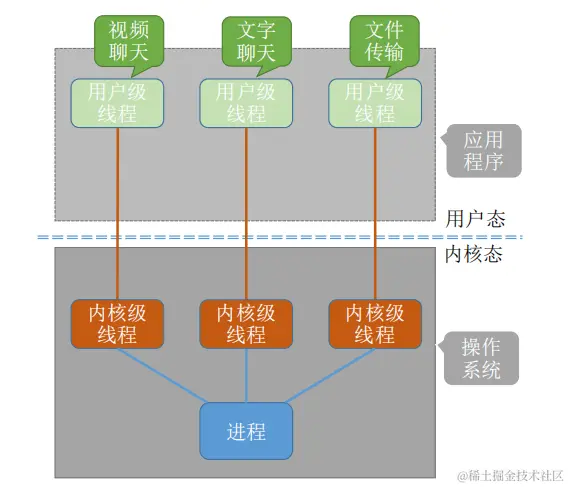 - 用户级线程中,线程切换可以在用户态下即可完成,无需操作系统干预。