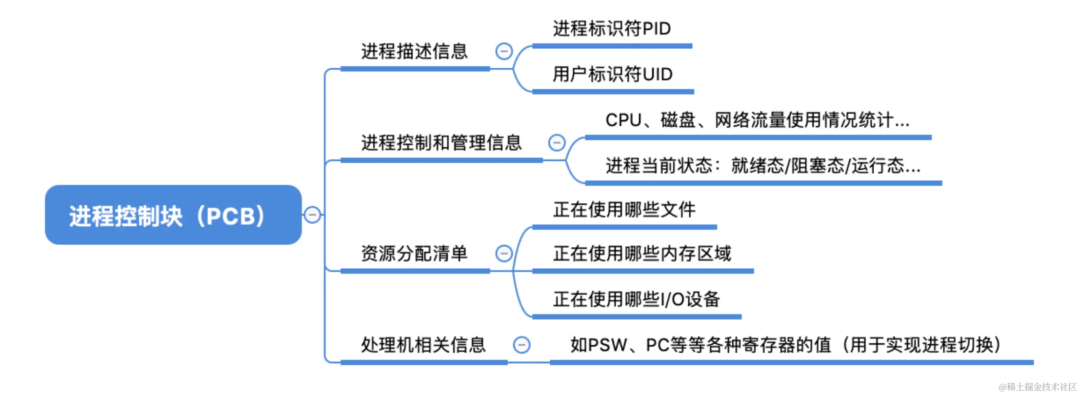 操作系统需要对各个并发运行的进程进行管理,但凡管理时所需要的信息,都会被放在PCB中。