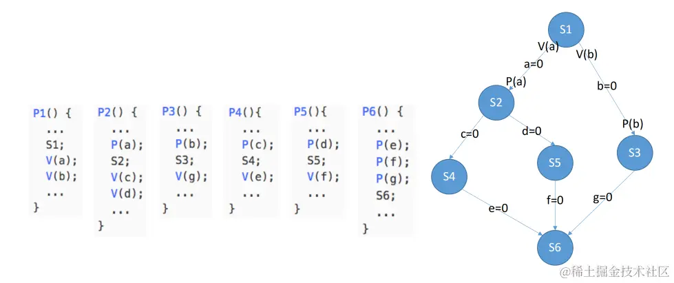 semaphore mutex = 1; //用于保证对count变量的互斥访问