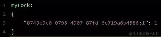 上述内容就代表“8743c9c0-0795-4907-87fd-6c719a6b4586:1”这个客户端,已经对“myLock”这个锁Key完成了加锁。