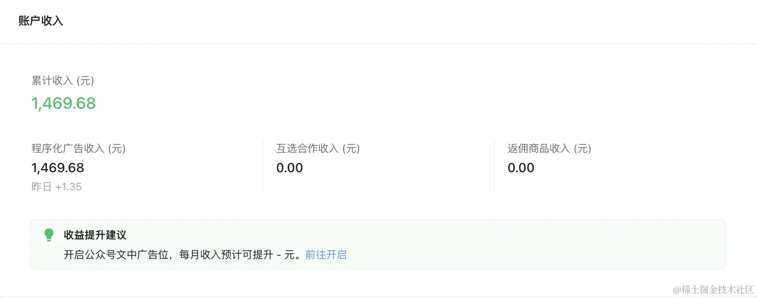 公众号最重要的是内容,我当然希望我的内容得到认可,所以每一个点赞每一笔赞赏我都牢记于心,这是对我文章最大的肯定,内容区域至关重要,所以我逐渐去掉了内容区域的关注引导、公众号二维码等等与内容无关的东西,就连文中广告都没开,因为它会影响到读者的阅读。但我开了文章末尾的广告,即便不多的收入也是对我文字的另一种认可
