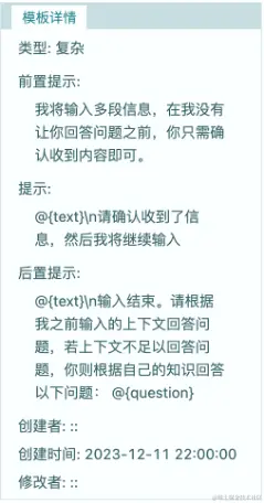 6.大文本大语言模型提示: 该算子支持复杂提示模板,能够将输入的数据流分成多段输出到大语言模型。以下是我们预先预置到HuggingFists提示库中的提示模板,见下图: