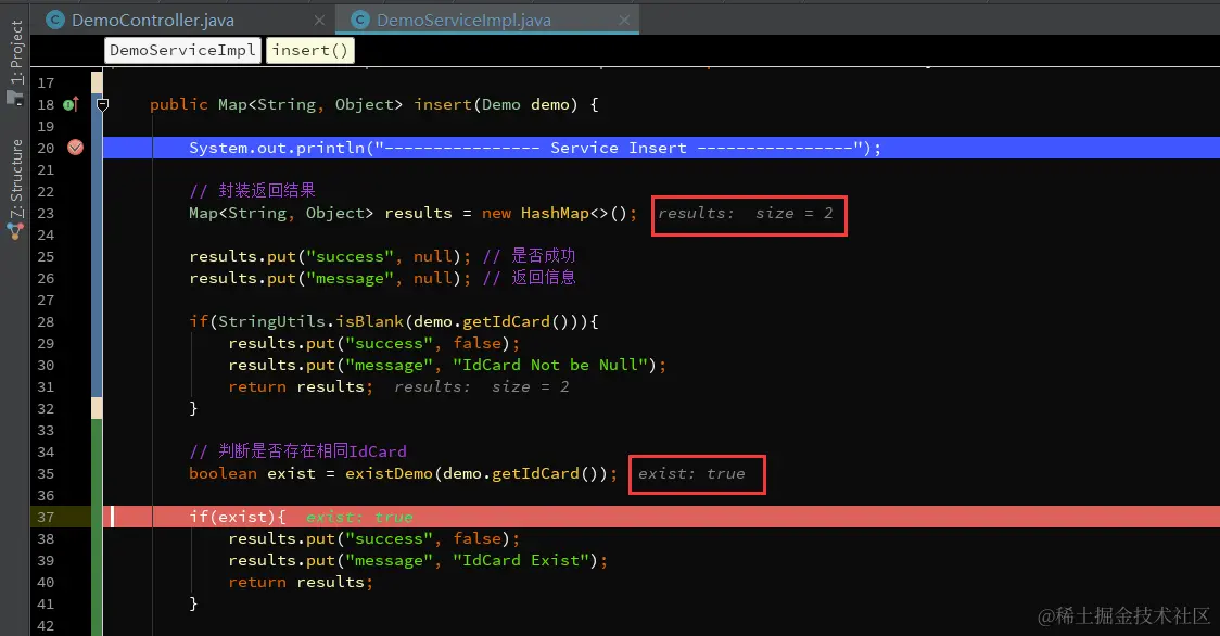 1、如下,在IDEA中,参数所在行后面会显示当前变量的值。