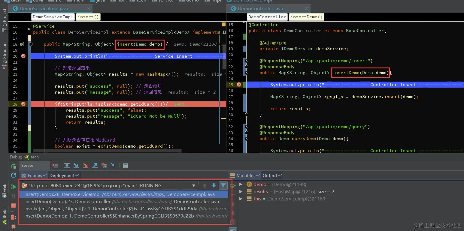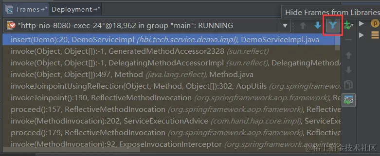 1、首先认识下这个方法调用栈,如图8.1,首先请求进入DemoController的insertDemo方法,然后调用insert方法,其它的invoke我们且先不管,最上面的方法是当前断点所在的方法。