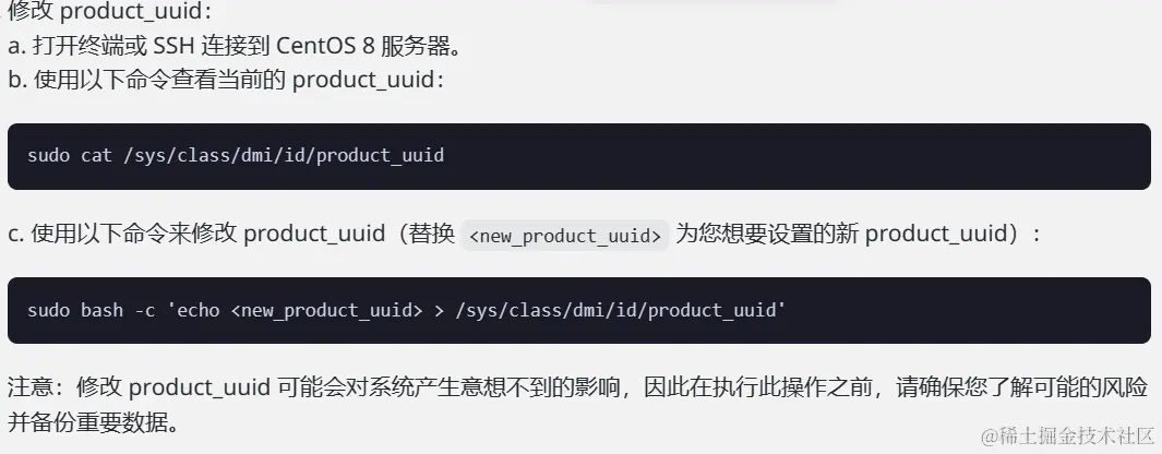 ip link或ifconfig -a来获取网络接口的 MAC 地址 可以使用sudo cat /sys/class/dmi/id/product_uuid命令对 product_uuid 校验
