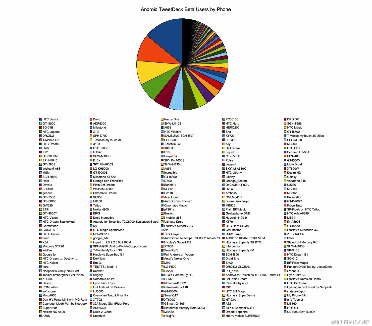 而仅仅是 Android 设备的碎片化情况,已经让 Android 开发者苦不堪言,我们用一张图看一下 Android 操作系统分裂情况(来自网上)。