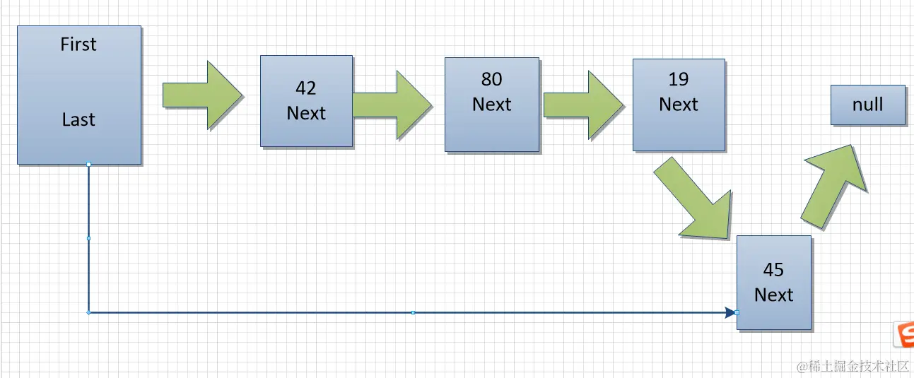 first.next.prev=null;//由图片可知,第一个链接点的prev总是指向null