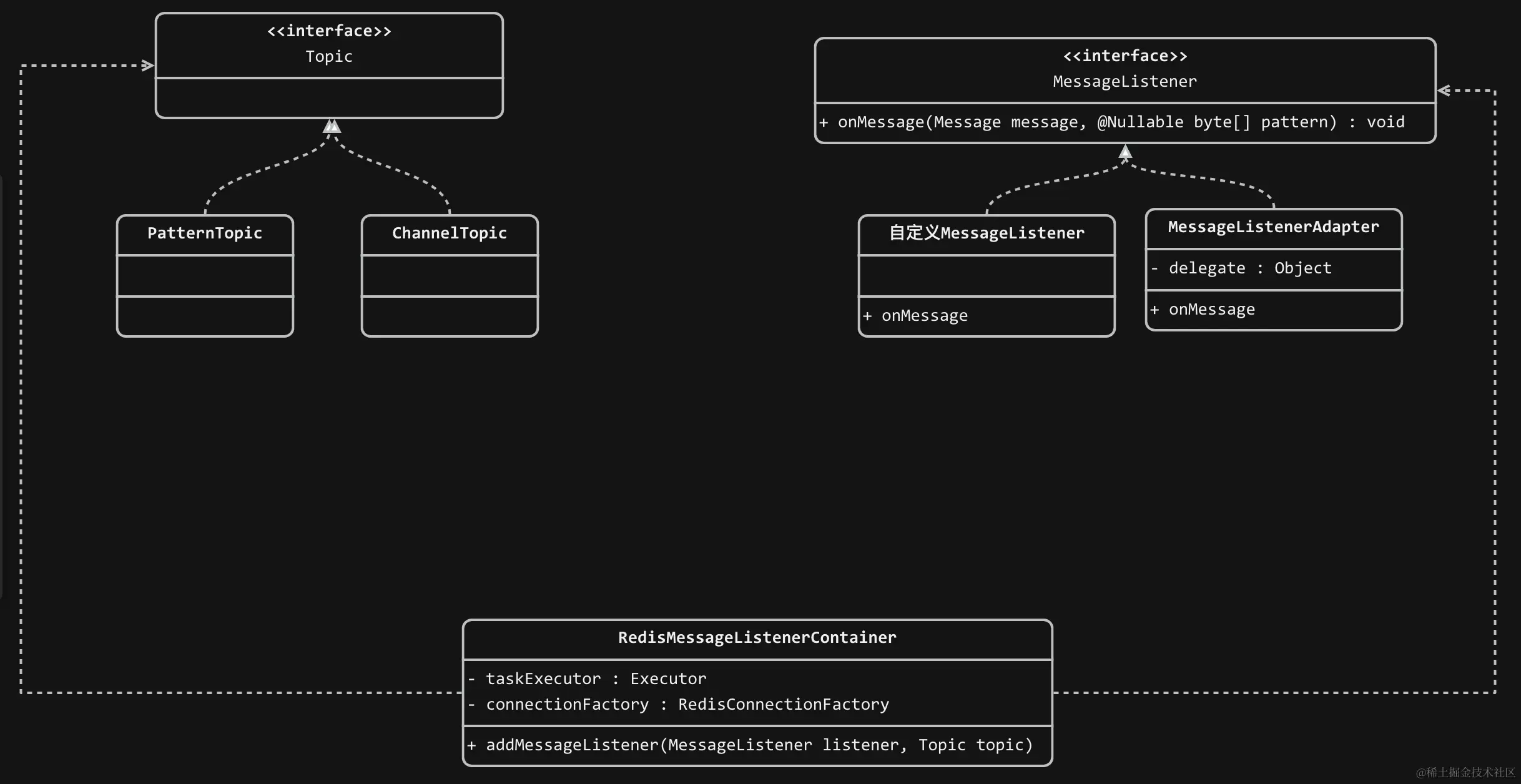 container.addMessageListener(myMessageReceiver, new ChannelTopic("channelTopic"));