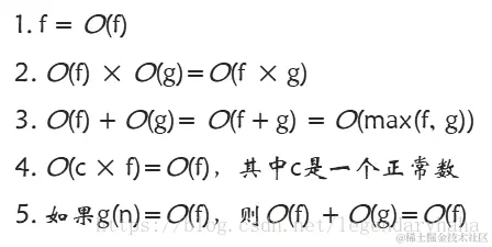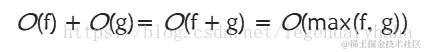 5.第五条,如果g(n)函数的运行时间为O(f)那么g(n)+f(n),我们仍然可以将它当做两个并行的for循环一样,这样就像第三条,这样它的运行时间还是为O(f)。