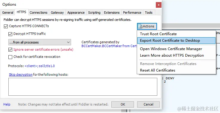 ①导出fiddler证书