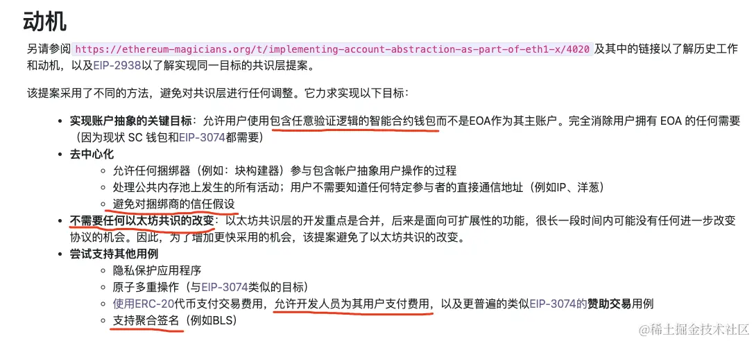 但 4337 是唯一一个不用更改以太坊协议就可实现账户抽象的提案。