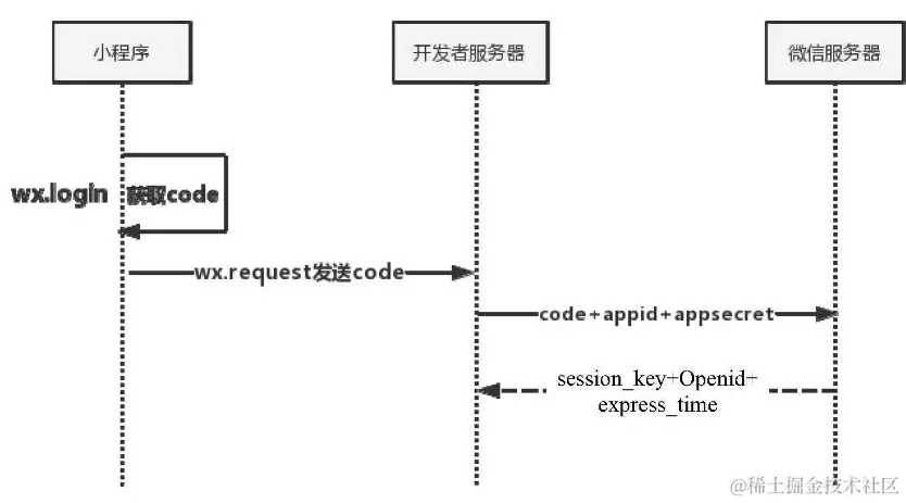 要获取session_key和openId,首先需要在小程序中调用wx.login,并获取code;随后将code发送到开发者服务器,并同appid和appsecret一起发送到微信服务器,微信服务器会返回我们需要的session_key和openId。