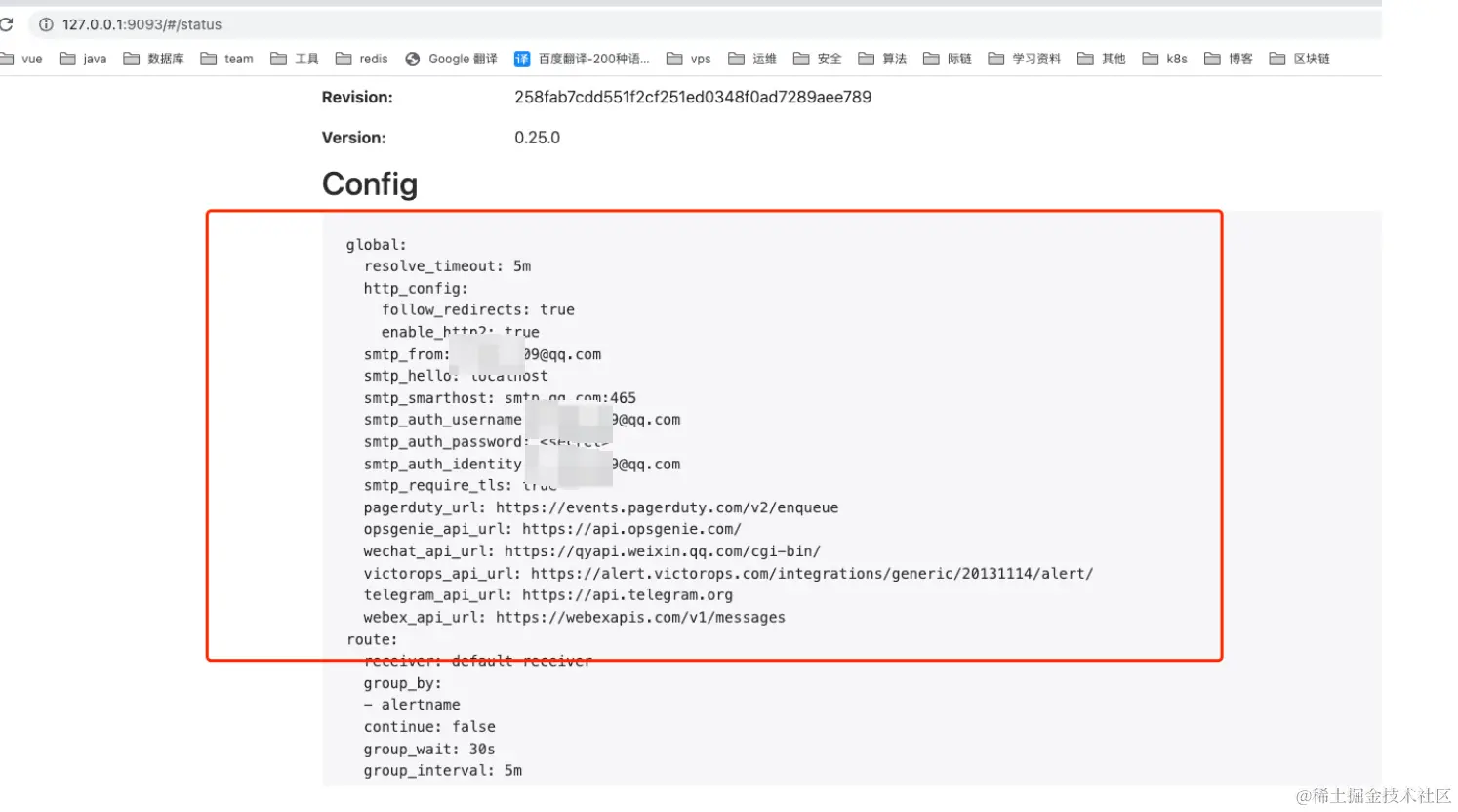 重启完成之后,访问http://localhost:9090/config,查看altering配置是否生效,出现如下红色标识则表示生效