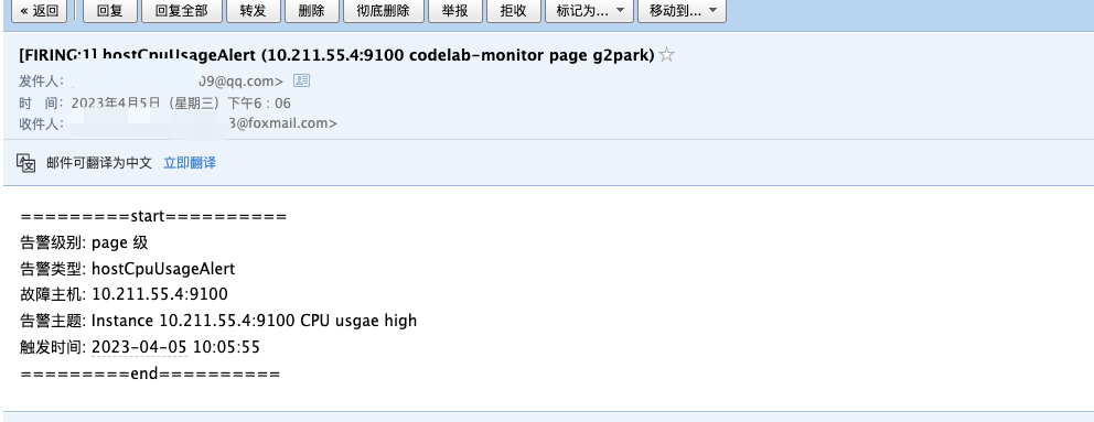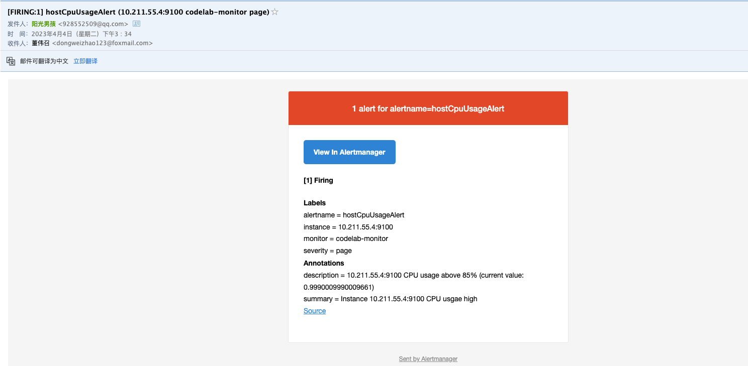 等待一分钟左右,会推送给altermanager,altermanager等待30s,会推送至对应的邮箱,如下图