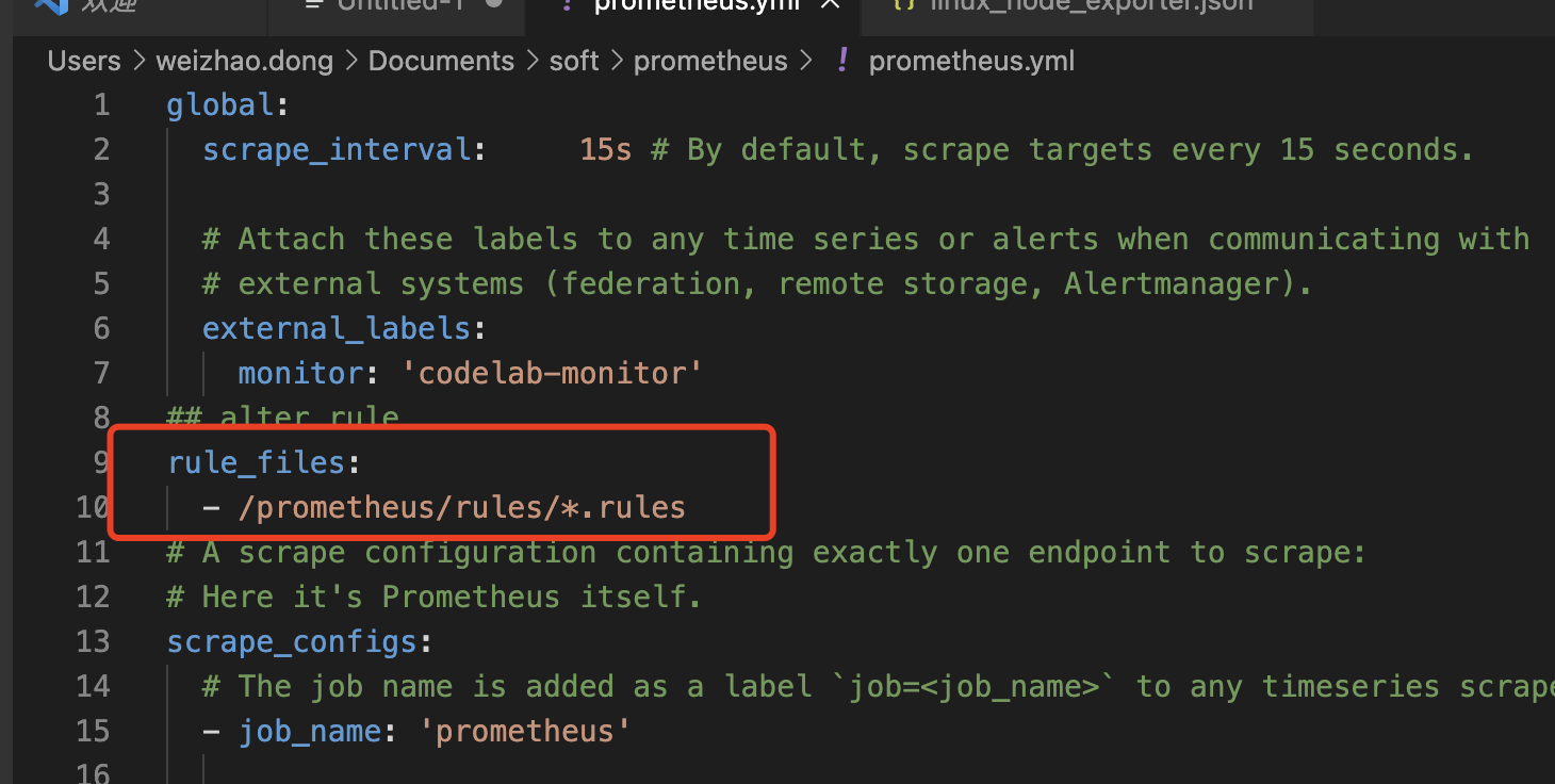编辑Prometheus配置文件prometheus.yml,并添加以下内容,这里的10.211.55.2作者是本地IP