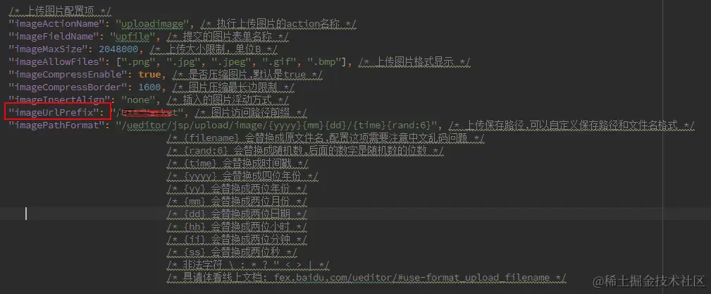有一些情况下仅仅靠返回路径是不能得到正常的图片链接,需要通过配置 imageUrlPrefix 给插入图片的路径添加前缀。
