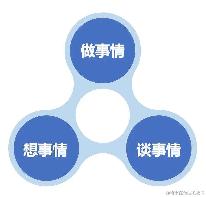 做事情与想事情比较好理解,为什么我会单独列出来谈事情,下文细聊,不过三者倒也真的算是相辅相成,只做不想谓之码农,只想不做谓之吹牛,至于只谈不想也不做算什么,那不就是个传声筒呗,算什么开发呢。