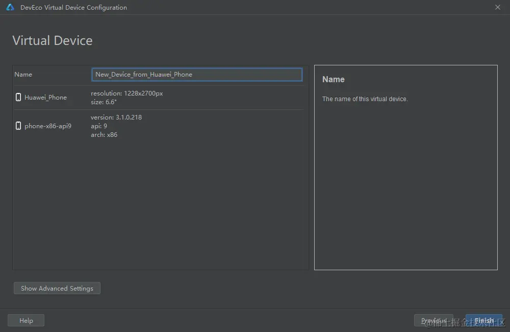 下载完成后,进行创建相应的手机模拟器,单击 Finish 完成创建。