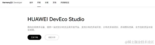 进入DevEco Studio 下载官网,单击“立即下载”进入下载页面。
