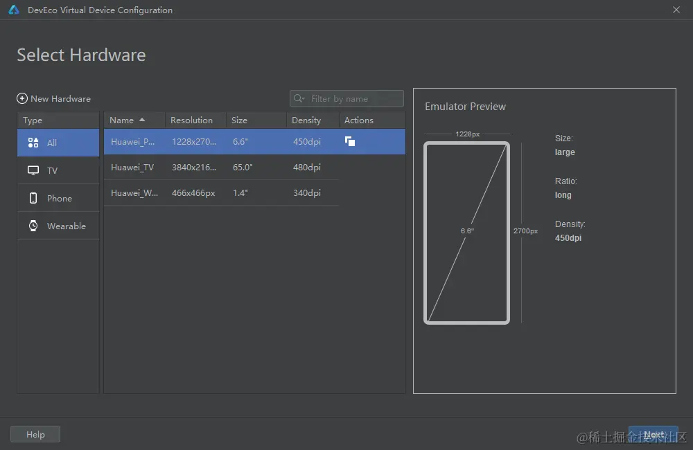 选择 Huawei_Phone 手机模拟器,单击'Next',进入模拟器系统下载页。