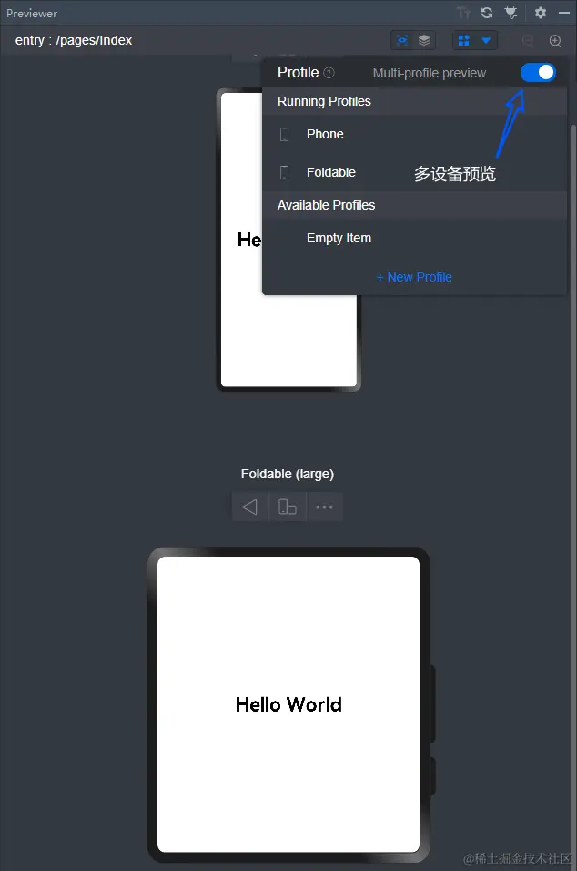 打开 Muti-profile preview 开关,可以实现多个尺寸设备的实时预览。