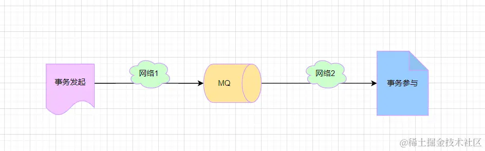 注意:事务发起方、消息中间件和事务参与方之间都是通过网络通信,由于网络通信的不确定性会导致分布式事务问题