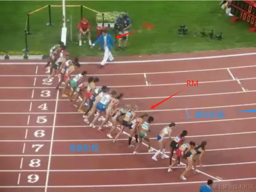 - 运动员(RM): 资源管理器(Resource Manager),也即事务参与者,可理解为一个数据库实例