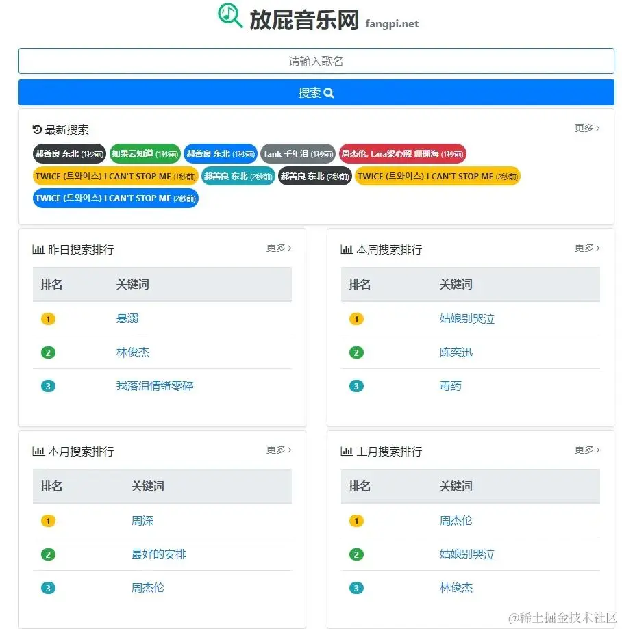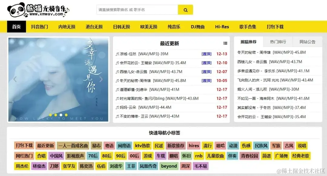 名字可能有点幽默,但这里的音乐资源量十分丰富。网站提供昨日、本周和本月排行榜,方便你快速找到最新的热门音乐。