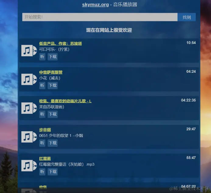 网站支持强大的歌名搜索,输入歌名或出处即可快速找到所需音乐。尽管网站目前仅支持在线收听,但不必担心,使用浏览器插件即可轻松下载音乐。