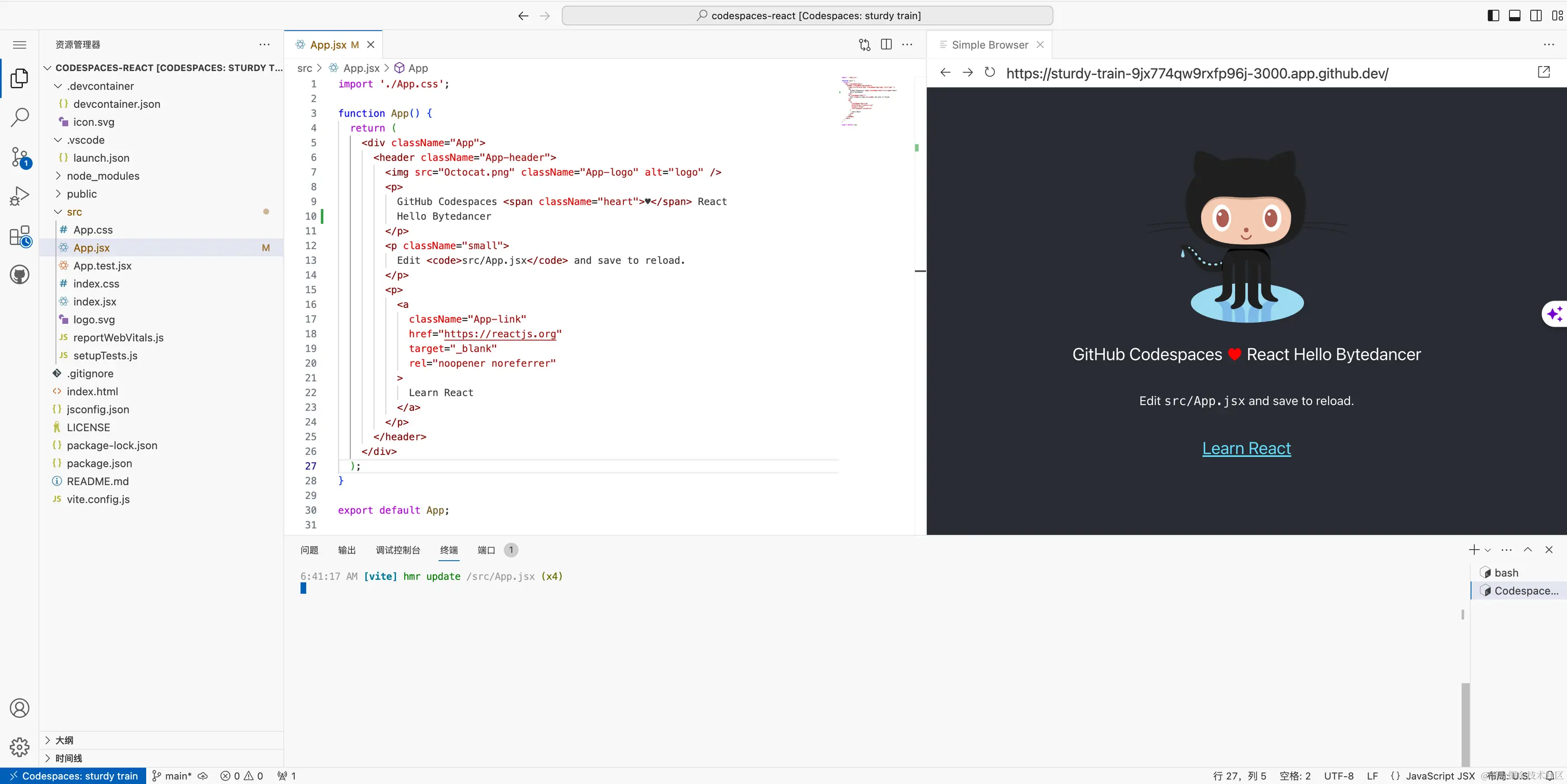 首先登场的鼎鼎大名的 Github 出品的(据说跳票了很久)Codespaces, 它直接使用 VS Code 源码: