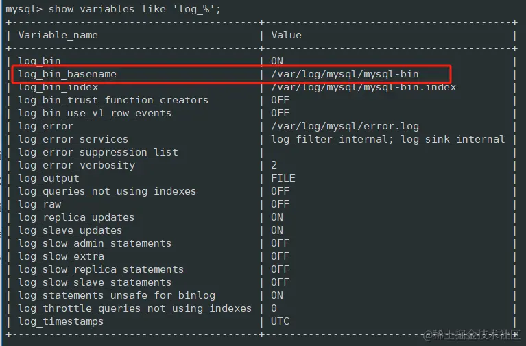 mysql> show variables like 'log_%';
