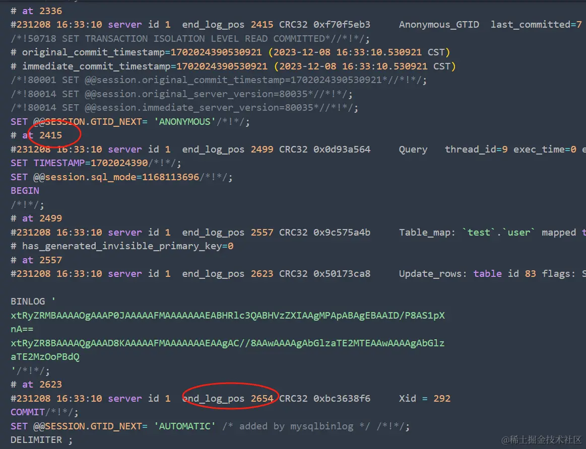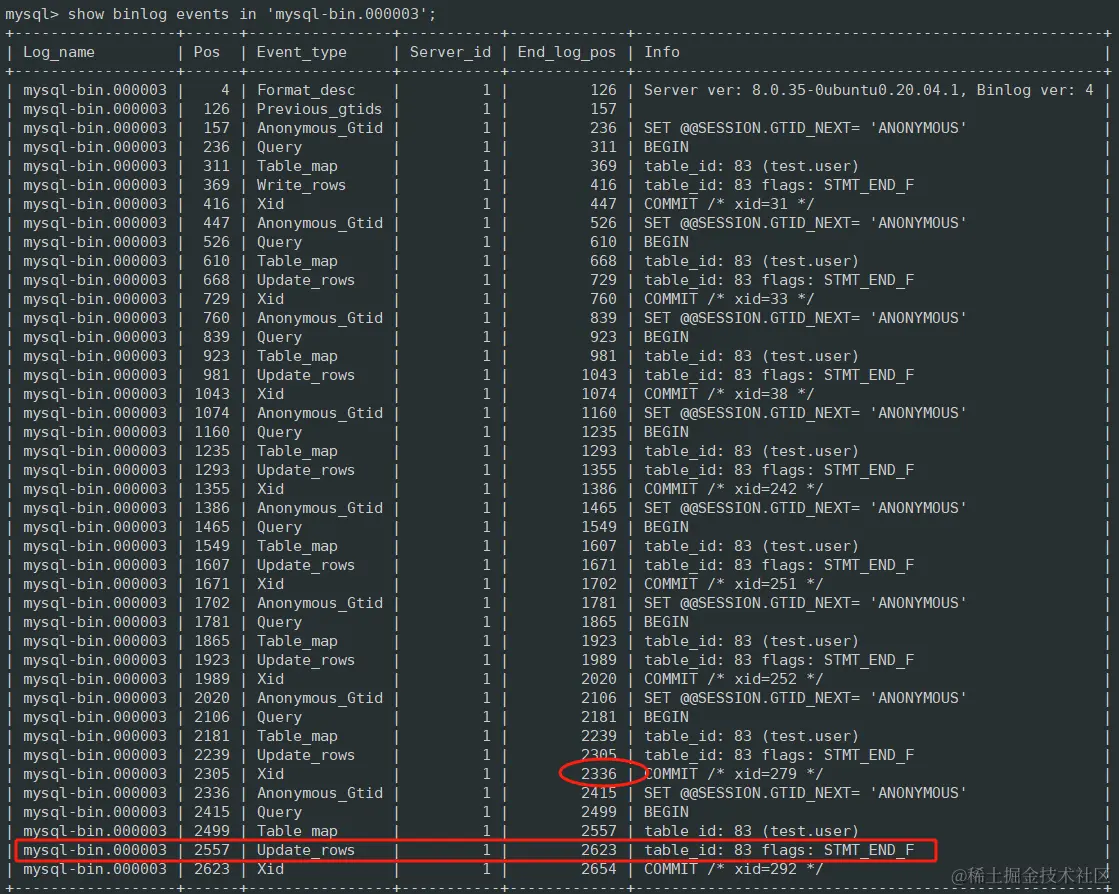 - 结束日志位置: 事件在 binlog 文件中的位置。