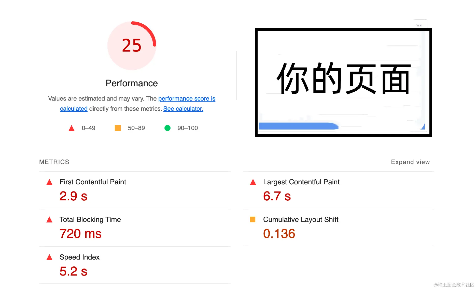 影响比例:上一帧的所有不稳定元素与当前帧的可见区域(占视口总面积的比例)的并集就是当前帧的影响比例。
