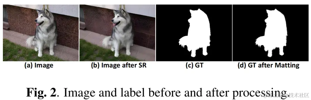 为了构建集成的数据集,我们与数据标签专家合作,为实际应用建立了显著标准。我们手动排除了不适合标记的图像,特别是在多个数据集行为不一致的情况下。超分辨率算法Real-ESRGAN被用来将分辨率提高到720多个短边像素。上采样的双线性内插被用来以相同的速率提高标签分辨率。利用预先训练好的大模板模型对所有SOD数据集的标签进行细化。
