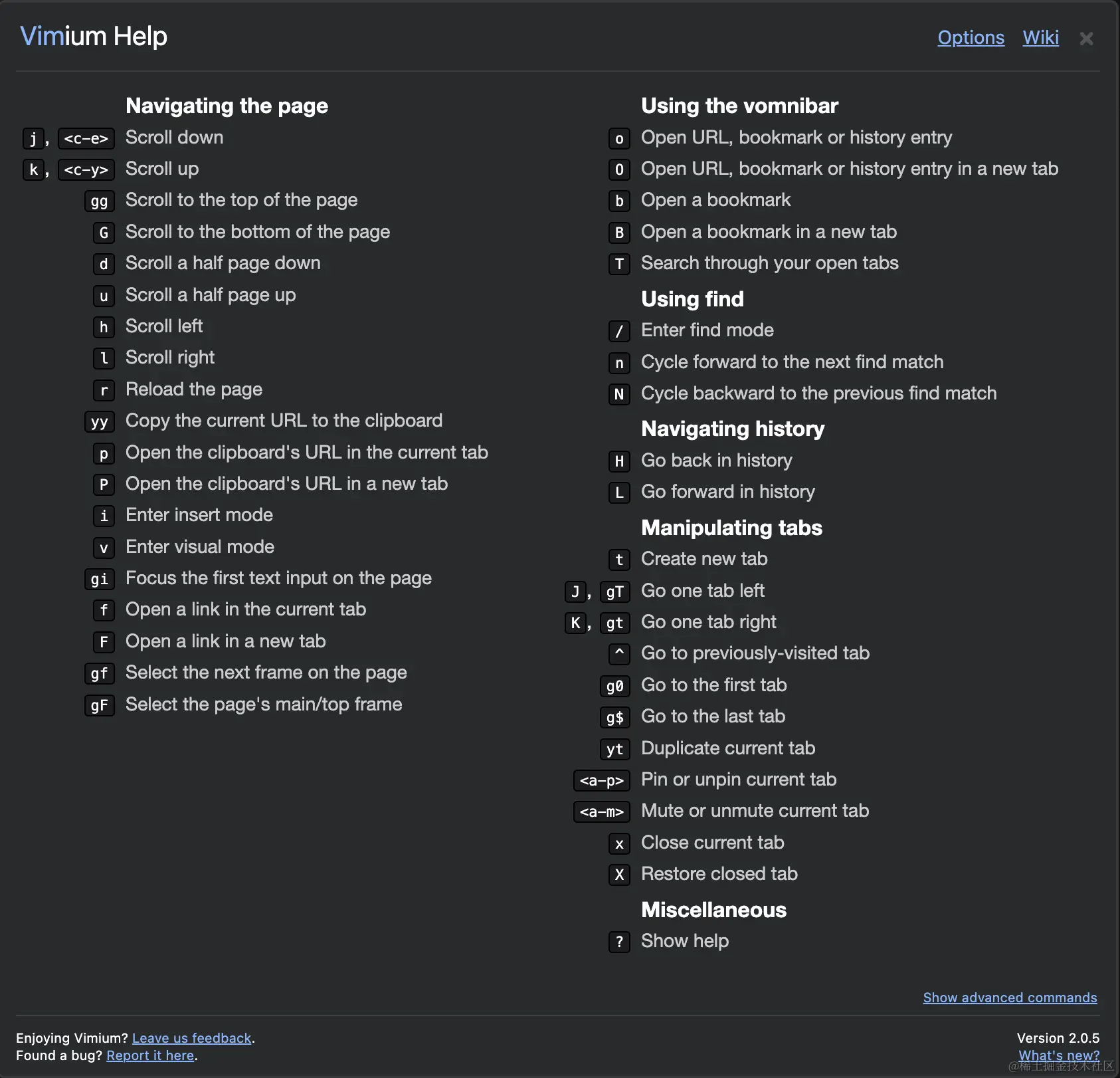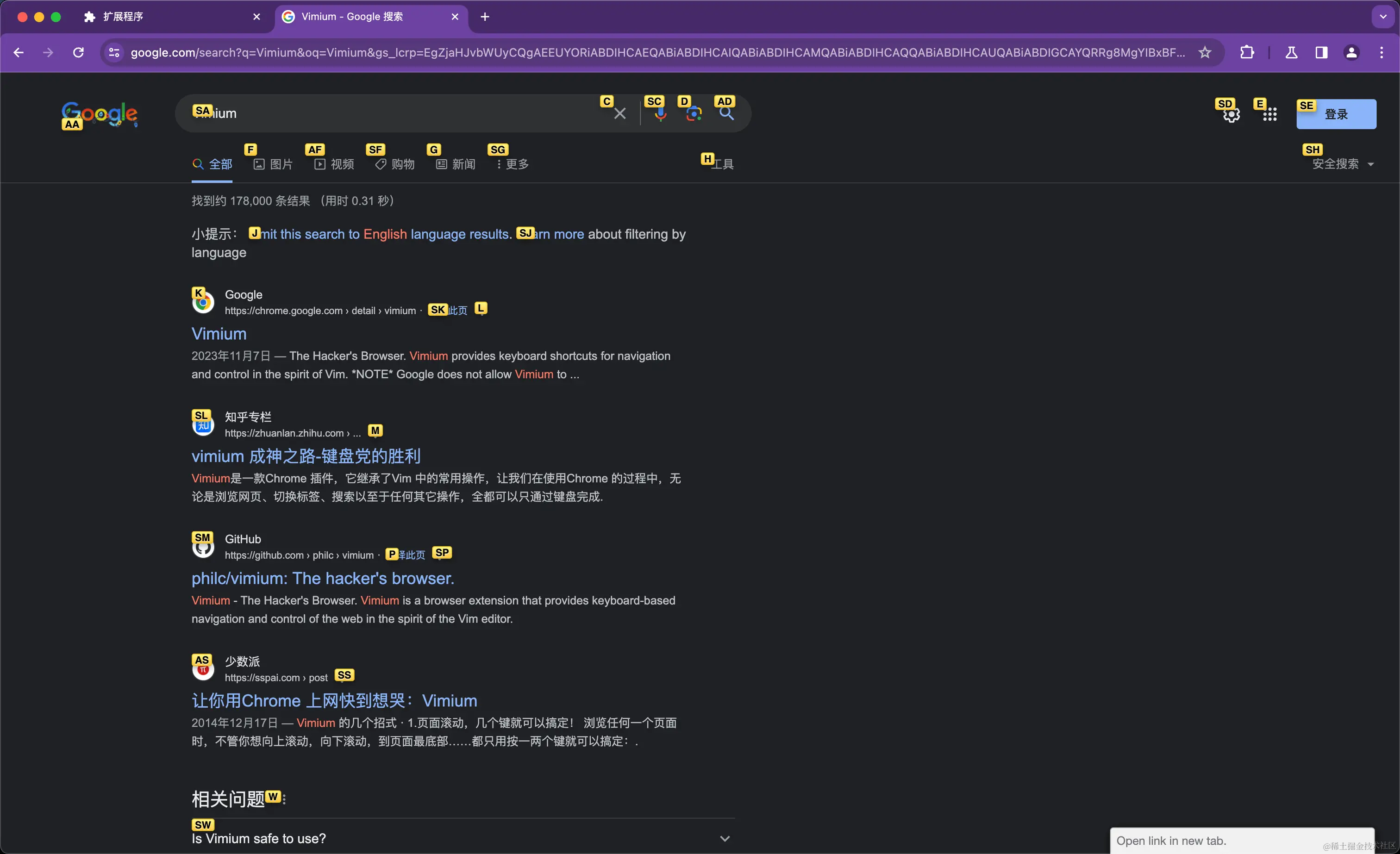 Vimium 为用户提供了类似 Vim 编辑器的键盘导航和操作方式,大大提升了浏览器操作的效率和速度。通过安装和使用 Vimium,你可以像在 Vim 中一样快速浏览网页、打开链接、搜索内容,甚至进行高级操作和自定义设置。不管你是 Vim 用户还是想要提高浏览器操作效率的用户,Vimium 都值得一试。