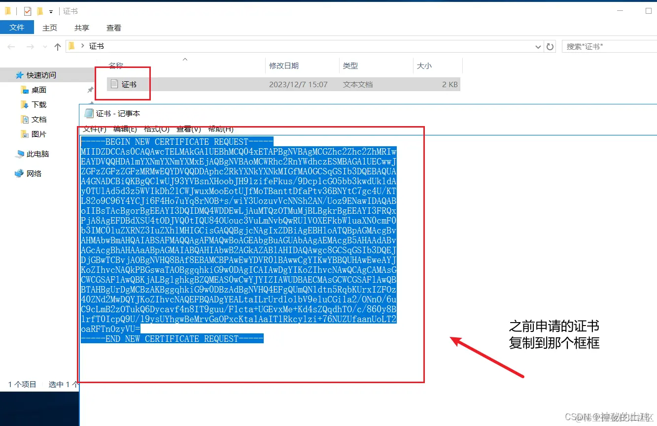 之前申请的证书 默认我放的是桌面打开复制内容到客户端那个空白框框