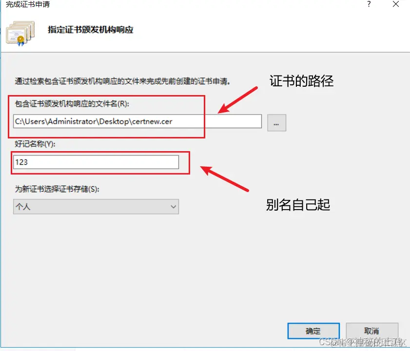 SSL证书填写刚刚完成申请的名称(自己起的)