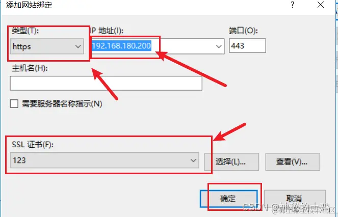 选择类型为Https IP地址为服务器IP 主机名可以不用写 写了也行