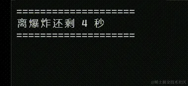 这时候会发现一个问题:输出“Boom!!”后,后面还有上一次的内容未完全清除,那是因为,新的内容文本比较短,没有完全覆写前一次的内容。咱们可以把字符串填充一下。
