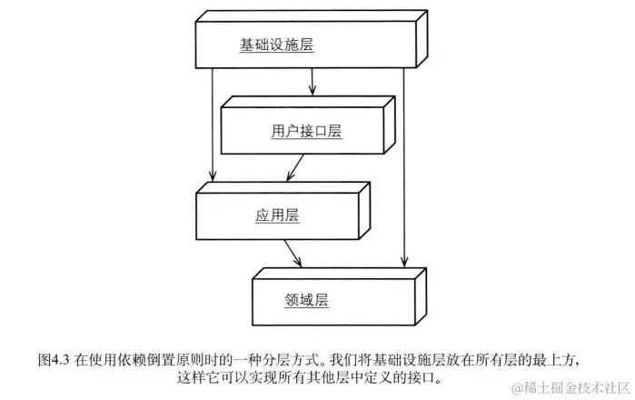 有一种方法可以改进分层架构——依赖倒置原则(Dependency Inversion Principle,DIP),它通过改变不同层之间的依赖关系达到改进目的。