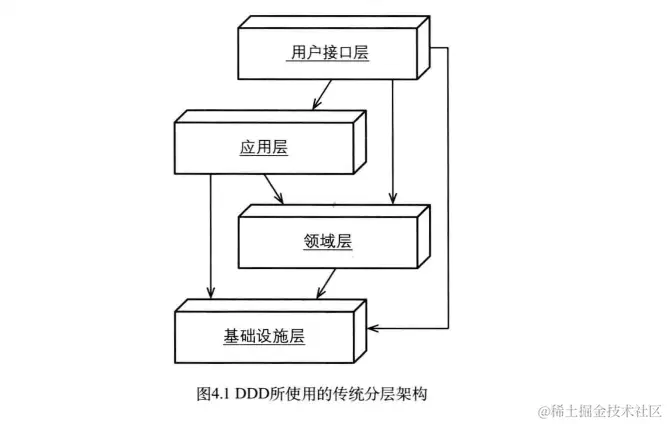 在分层架构中,我们将领域模型和业务逻辑分离出来,并减少对基础设施、用户界面甚至应用层逻辑的依赖,因为它们不属于业务逻辑。将一个复杂的系统分为不同的层,每层都应该具有良好的内聚性,并且只依赖于比其自身更低的层。