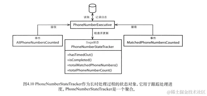 在实际的领域中,一个长时处理过程的执行器将创建一个新的类似聚合的状态对象来跟踪事件的完成情况。该状态对象在处理过程开始时创建,它将与所有的领域事件共享一个唯一标识。同时,将处理过程开始时的事件戳保存在该状态对象中也是有好处的。