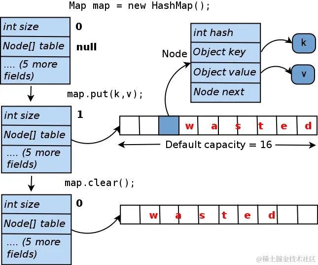首先,请注意,JDK集合的内部并不是魔术。它们是用Java编写的。他们的源代码随JDK一起提供,因此您可以在IDE中打开它。也可以在网上轻松找到。而且,事实证明,在优化内存占用方面,大多数集合都不是很完善。