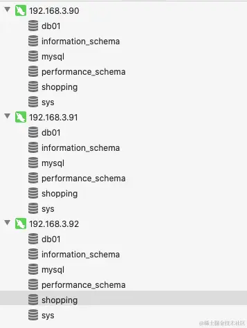 在192.168.3.90,192.168.3.91,192.168.3.92三台服务器上创建shopping数据库